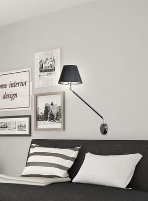 Kinkiet czarny regulowany świetnie komponuje się z nowoczesnymi wnętrzami, ale równie dobrze odnajduje się w stylu industrialnym, klasycznym, japandi czy hotelowym. Można go łączyć z innymi czarnymi lampami, jak również z drewnem, szarościami, beżem czy elementami stalowymi.