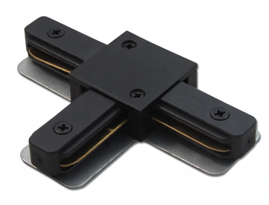 Czarny łącznik T do szynoprzewodów wpuszczanych 1-fazowych. Umożliwia połączenie trzech szyn w układzie litery T.