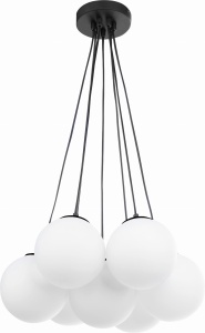 Lampa Farmese to elegancka i nowoczesna lampa wisząca, która posiada 7 kloszy wykonanych ze szkła akrylowego. Każdy klosz ma średnicę 20 cm. Całkowita długość lampy wynosi 120 cm, co sprawia, że świetnie nadaje się do wysokich pomieszczeń, takich jak antresole. Klosze lampy są rozmieszczone blisko siebie, tworząc efekt przypominający chmurę, co dodaje wnętrzu lekkości i nowoczesnego charakteru.
