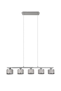 Lampa Kaprun charakteryzuje się regulacją wysokości, co pozwala na dopasowanie jej do indywidualnych potrzeb i warunków wnętrza. Jest to szczególnie przydatne w jadalniach nad stołem czy w salonach, gdzie może stanowić centralny punkt oświetlenia. Szare klosze z tkaniny dodają lampie elegancji i subtelności, a chromowane wykończenia nadają nowoczesnego charakteru.