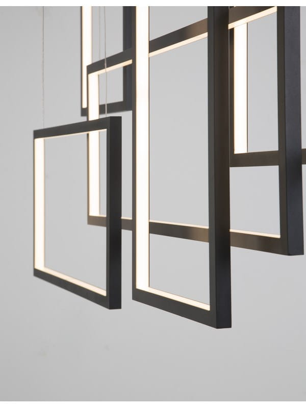 Lampa Lepe charakteryzuje się unikalnym, geometrycznym kształtem, składającym się z kilku prostokątnych ram, które nadają jej nowoczesny wygląd. Wykonana z wysokiej jakości aluminium, malowanego proszkowo na kolor czarny, lampa jest nie tylko trwała, ale również elegancka. Jej minimalistyczny design doskonale wpisuje się w współczesne aranżacje wnętrz.