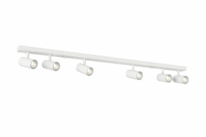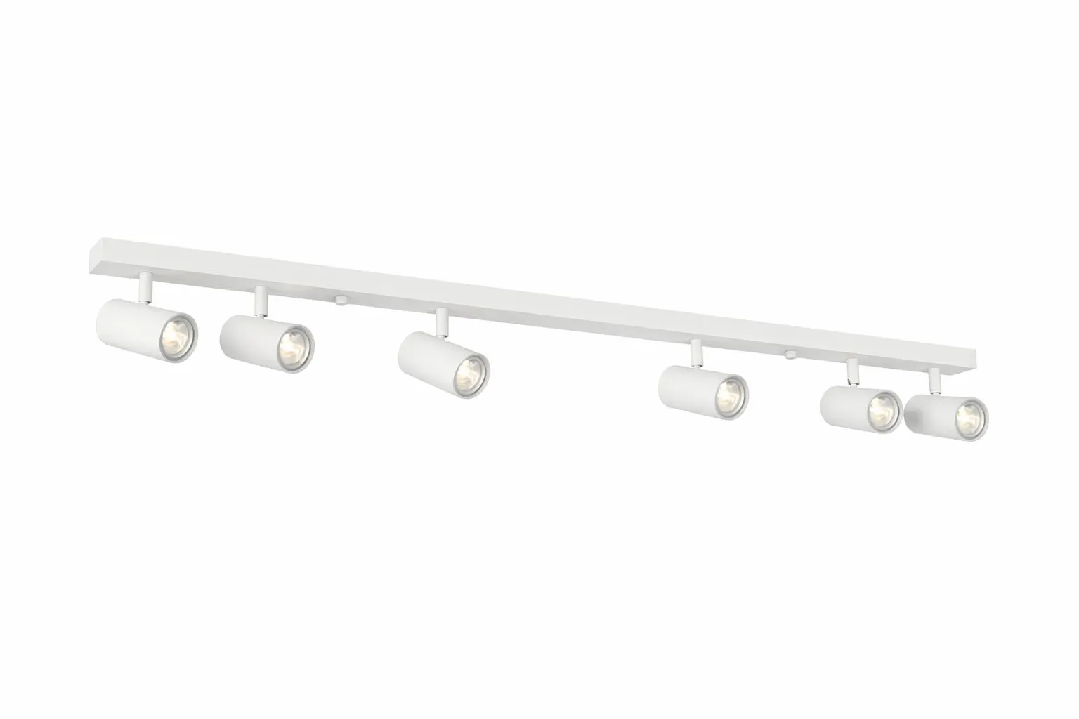 Nowoczesna listwa sufitowa z sześcioma reflektorami to funkcjonalne rozwiązanie oświetleniowe do wnętrz, w których liczy się możliwość precyzyjnego ustawienia kierunku światła. Każdy z reflektorów przystosowany jest do żarówek GU10, co pozwala na łatwy dobór źródła światła dopasowanego do indywidualnych potrzeb – zarówno pod względem barwy, jak i mocy.