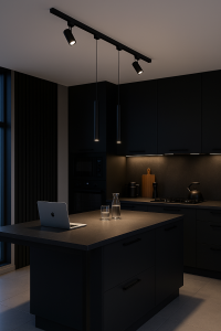 Wyobraź sobie przytulny wieczór w kuchni, gdzie reflektory subtelnie oświetlają przestrzeń roboczą, a reszta wnętrza tonie w delikatnym półcieniu. Zestaw 3-fazowy 200 cm daje Ci pełną kontrolę nad klimatem oświetlenia – od ciepłego, relaksującego światła po mocne doświetlenie konkretnych stref.