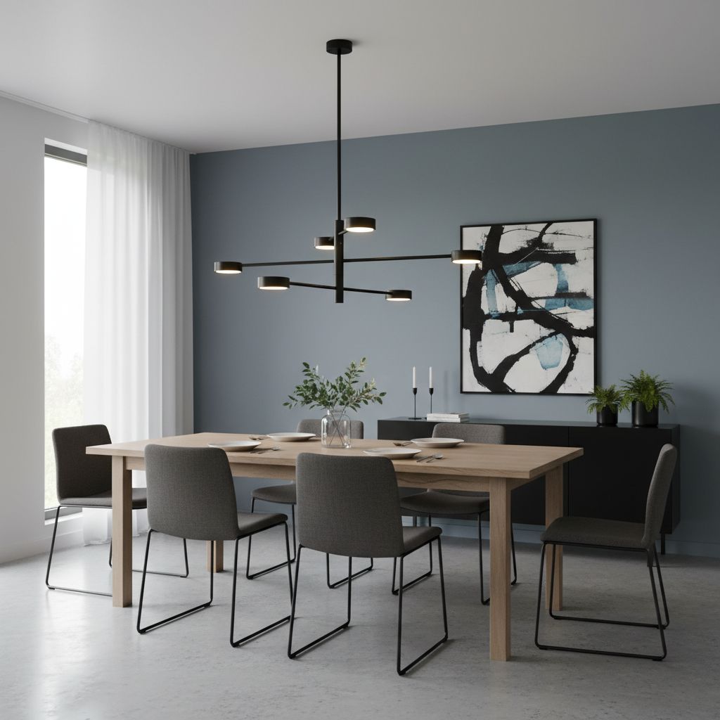 Czarny żyrandol o rozbudowanej formie jest chętnie wybierany do wnętrz nowoczesnych, minimalistycznych i loftowych. Symetryczny układ ramion sprawia, że światło rozchodzi się w kilku kierunkach, co poprawia komfort użytkowania i eliminuje efekt punktowego doświetlenia tylko jednej strefy.