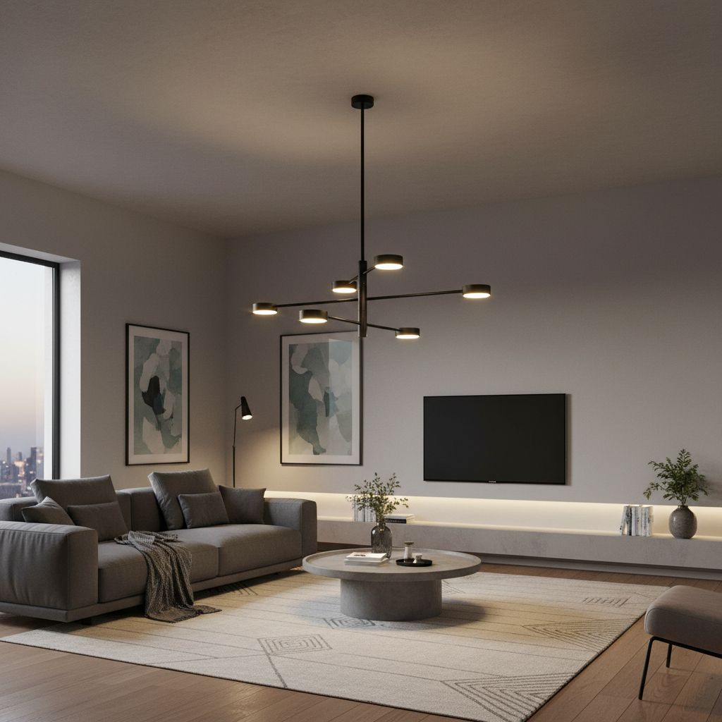 Żyrandol Black VI to nowoczesna lampa sufitowa zaprojektowana jako główne źródło światła do wnętrz mieszkalnych. Wielopunktowa konstrukcja pozwala na równomierne oświetlenie całego pomieszczenia, dzięki czemu lampa dobrze sprawdza się w salonie, jadalni oraz przestrzeniach typu open space.