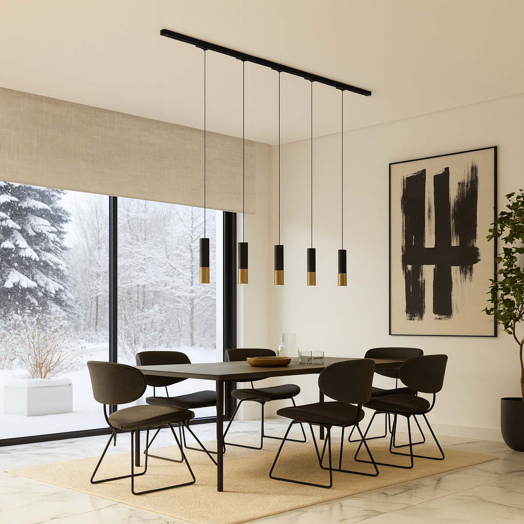 Szukasz elastycznego i efektownego sposobu na doświetlenie kuchni, jadalni lub salonu? System oświetlenia szynowego 3-fazowego o długości 200 cm to nowoczesne i w pełni konfigurowalne rozwiązanie, które nie tylko doskonale spełni swoją funkcję, ale też zachwyci minimalistycznym designem. Dzięki pięciu zwisającym lampom na żarówki GU10 zyskujesz maksymalną kontrolę nad światłem w swoim wnętrzu.